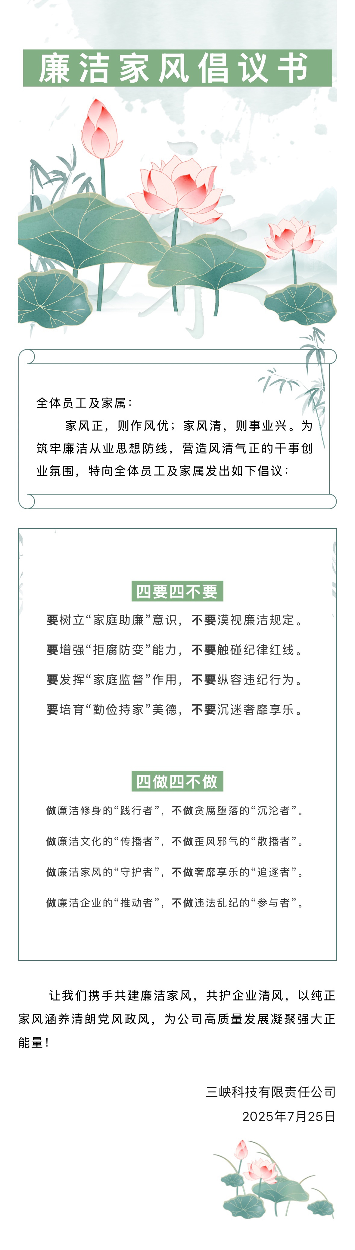 廉潔家風倡議書